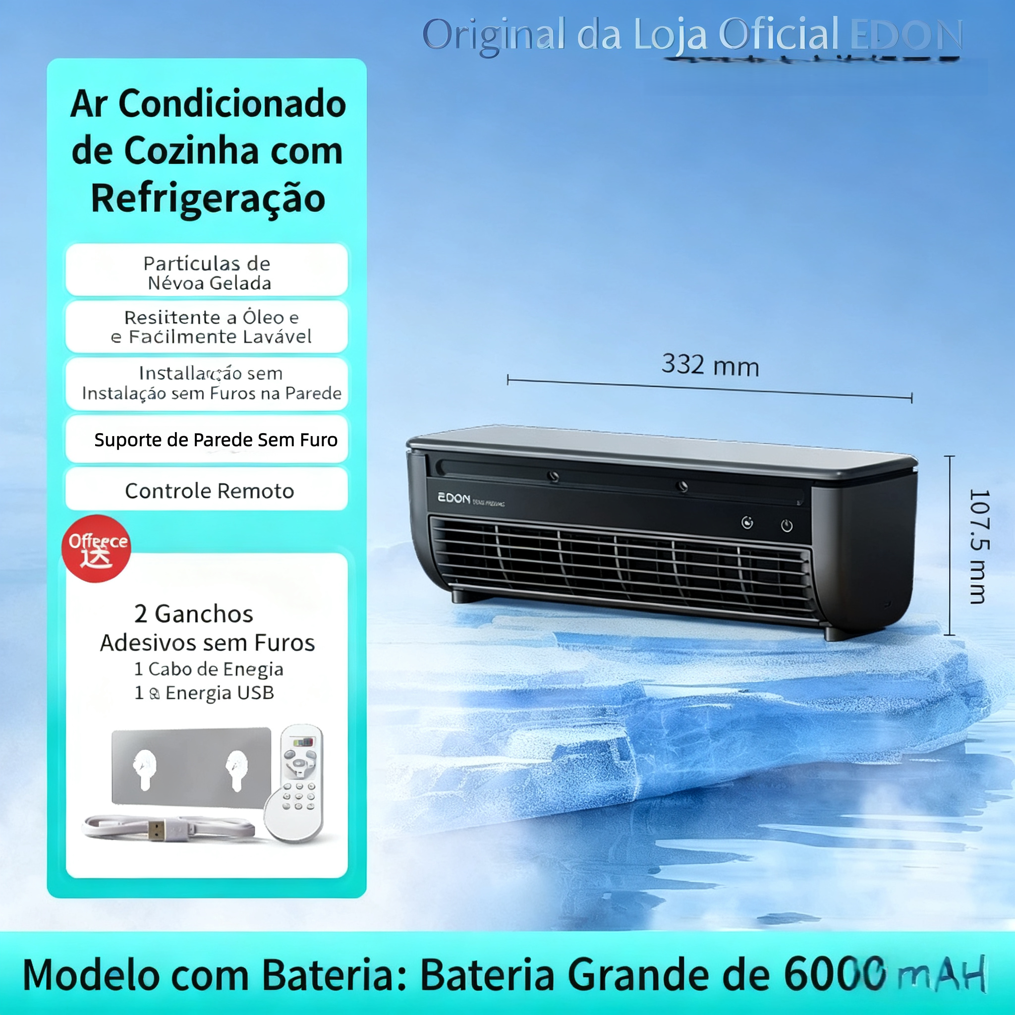 Refrigeração semiconductor emite ar fresco em 30s, além de jato de névoa gelada — cozinhar, descansar na sala ou dormir no quarto, desfrute de frescor em qualquer lugar~ Uso em mesa ou parede, colado na parede não ocupa espaço, instalação sem perfurar super fácil!Resistente à graxa e removível para limpeza, ideal para cozinha; bateria de 6000mAh com longa duração, controle remoto para ajustar deitado~ No verão angolano, com ele em casa fica fresco e não abafado, custo-benefício máximo! Clique para ver a prova real~ ✨